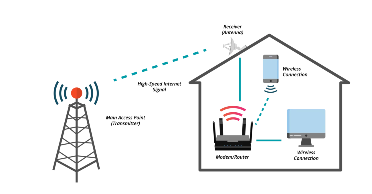 Faircom uses what we call a “high site” where we place a large antenna. This allows us to broadcast fibre-like speeds and latency from our high site to your receiver that is located on your building or roof.